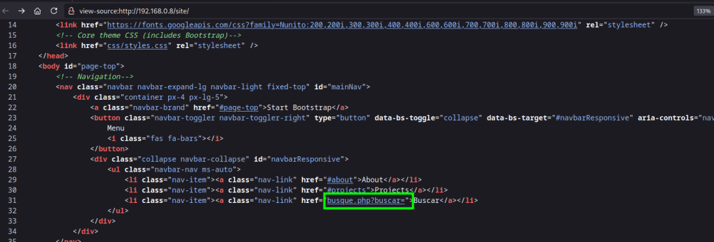- Vamos a examinar la pagina web a nivel de código fuente, para eso damos CTRL + U para poder verla en modo view-source