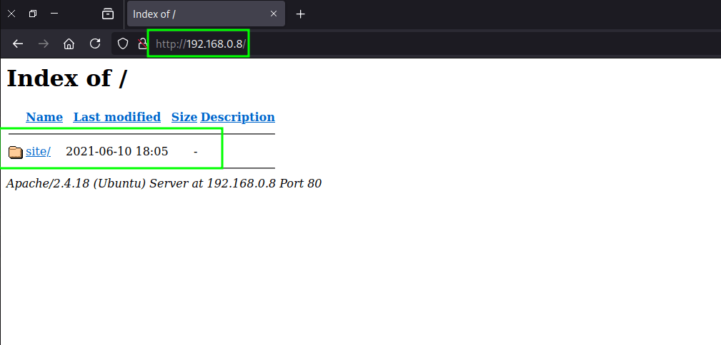Ahora si, ya tenemos 2 puertos expuestos a la escucha, por lo cual los vamos a enumerar manualmente, vamos primeramente por el puerto 80 que es el que me llamó la atención por un directorio que expuso el escaneo, site/