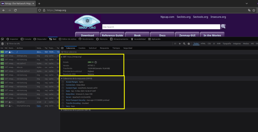 - Transferido: No es como tal una cabecera, si no más bien representa el total de tráfico que se ha transferido para esa solicitud en la herramienta que se está utilizando, en este caso estamos utilizando las herramientas de desarrollador de firefox.