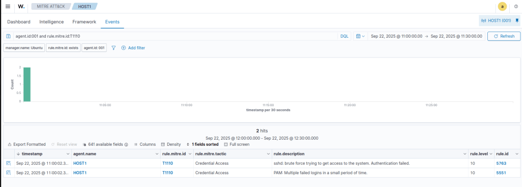 - El SIEM + HIDS detectó de forma inmediata los intentos de fuerza bruta.