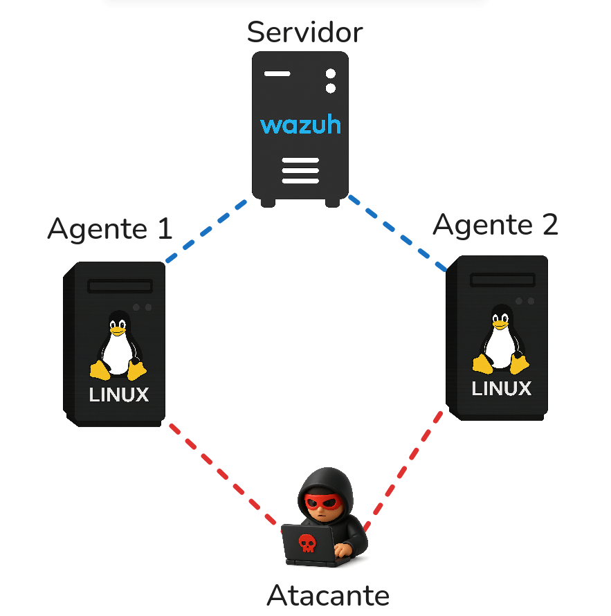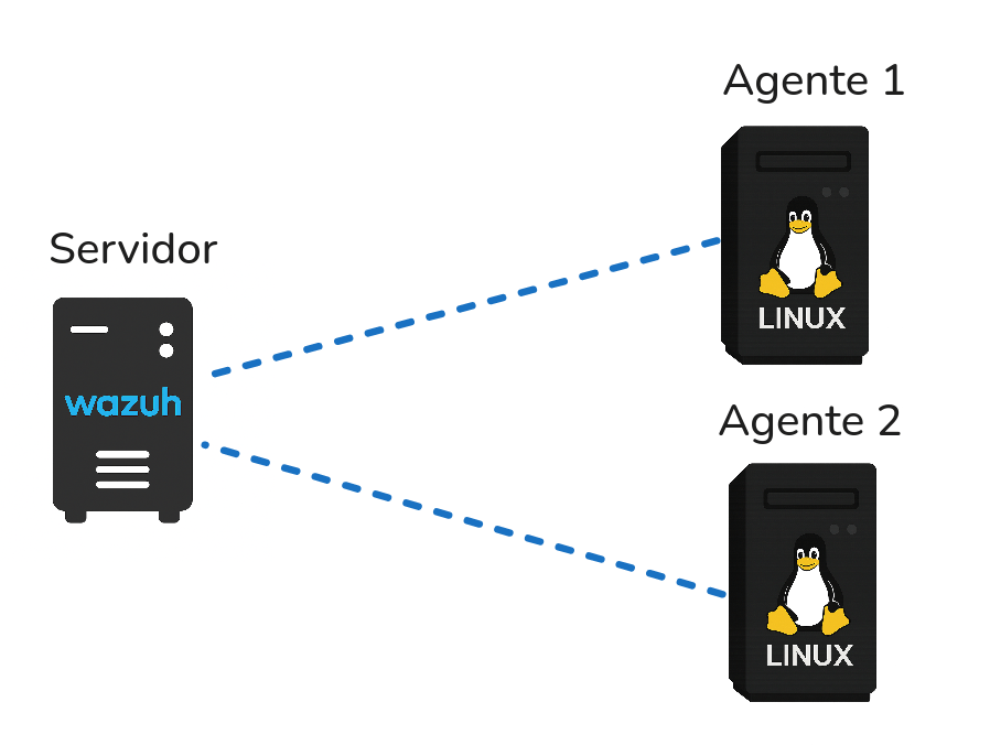 Infraestructura usada: 1 Servidor Wazuh, 2 Host